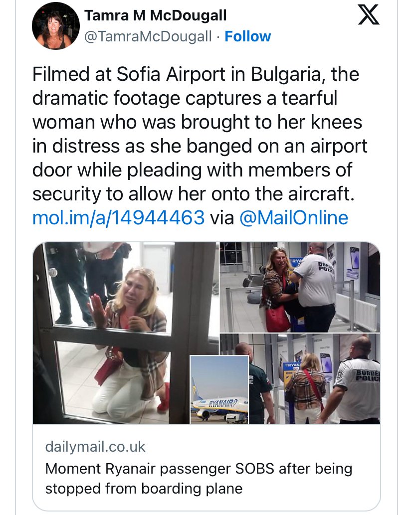 A dramatic scene unfolded at Sofia Airport in Bulgaria when a passenger was denied boarding on a Ryanair flight to Vienna due to her oversized hand luggage. The woman was visibly distraught, crying and falling to her knees as she pleaded with staff to let her on the plane.