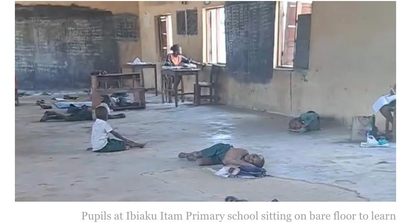 In oil-rich Akwa Ibom, Nigeria, a disturbing paradox exists. While government officials drive luxury SUVs, pupils in public primary schools sit on bare floors, lacking basic facilities. A viral video from Ibiaku Itam Primary School exposed the harsh reality: dilapidated classrooms, broken desks, and children writing on their stomachs.