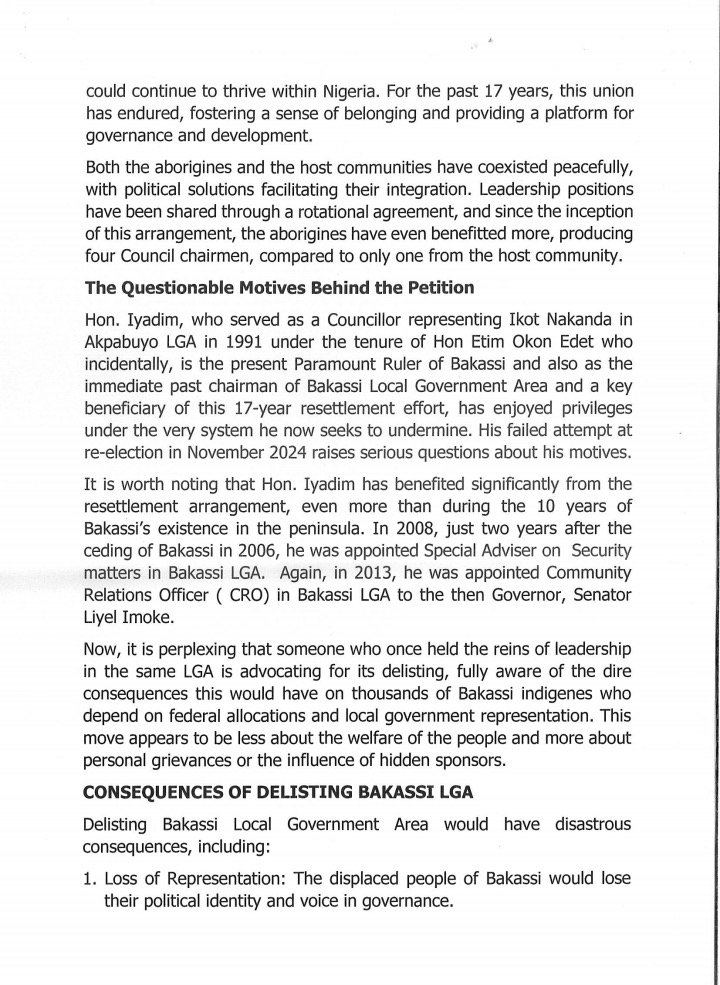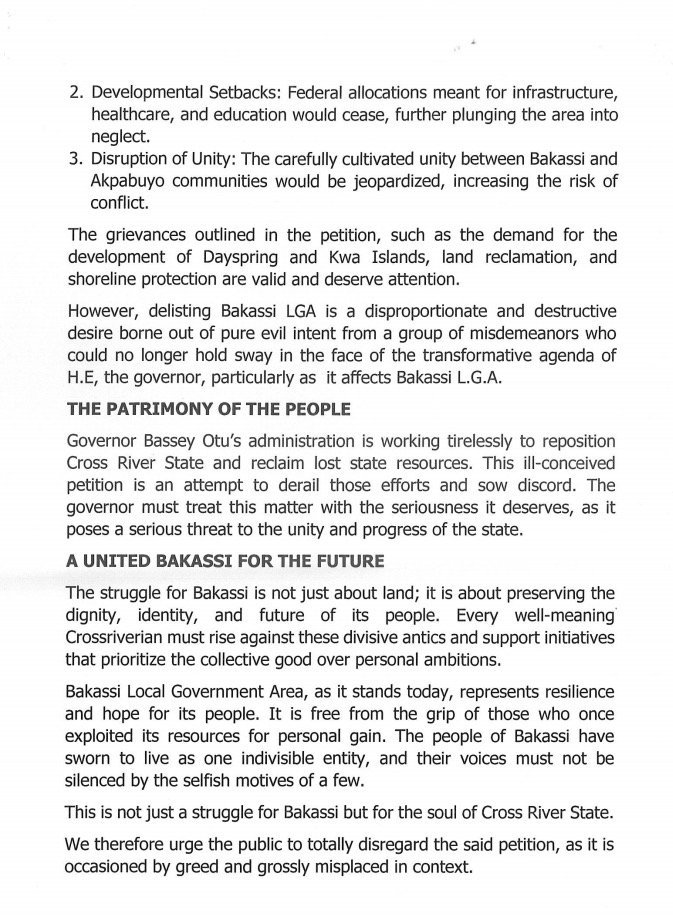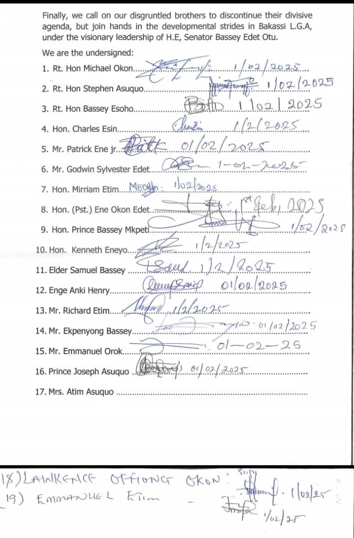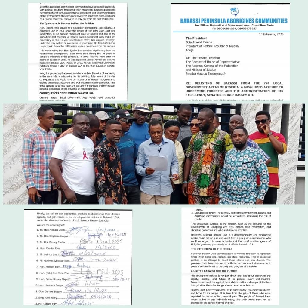 Finally, BPAC commended Senator Bassey Edet Otu for his visionary leadership geared toward the holistic development of Bakassi, underscoring key projects such as the Bakassi International Deep Seaport and investments in human capital, oil, and gas infrastructure. They urged those advocating for the delisting of Bakassi to collaborate with the State Government in fostering development in the Local Government Area, rather than promoting divisive agendas.
