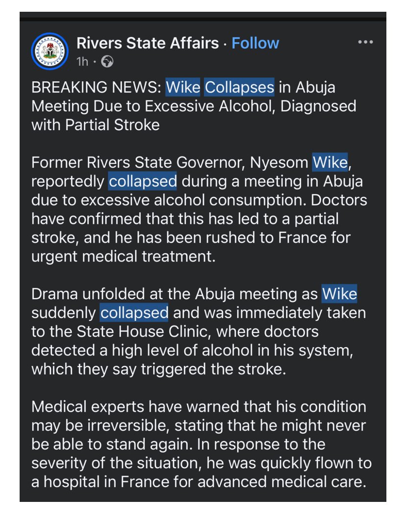 This isn’t the first time Wike has been the subject of false rumors. The former governor has been a prominent figure in Nigerian politics, and it’s not uncommon for misinformation to spread quickly about public figures.