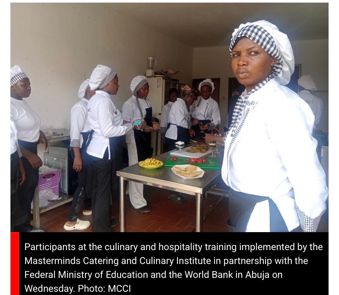 In a major move to fight youth unemployment and bridge Nigeria’s skills gap, the Federal Government has successfully trained and empowered 100 young Nigerians in culinary and hospitality services. The six-month programme ran under the Innovation, Development and Effectiveness in the Acquisition of Skills (IDEAS)_ initiative, a partnership between the Federal Ministry of Education, World Bank, and Masterminds Catering and Culinary Institute (MCCI).