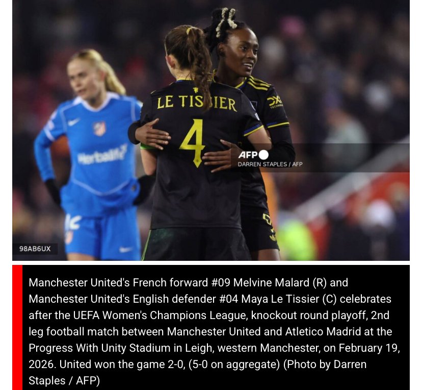 Manchester United Advances to Women’s Champions League Quarters with 2-0 Win Over Atletico Madrid on