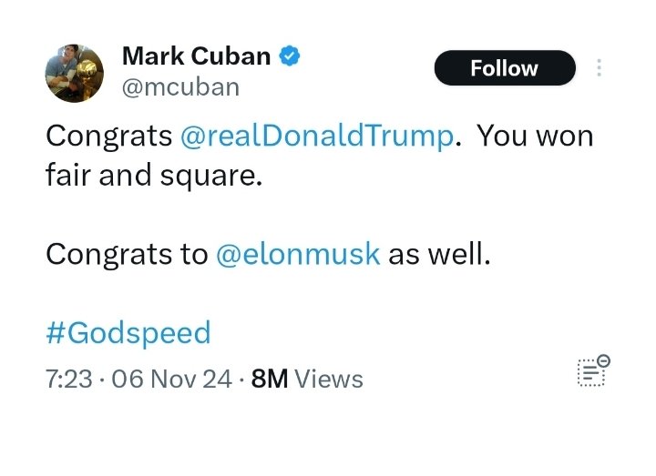Cuban’s message of congratulations to Trump showcases a recognition of the democratic process and a focus on acknowledging electoral outcomes, regardless of past political affiliations.