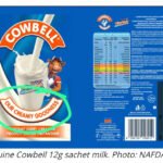 The National Agency for Food and Drugs Administration and Control (NAFDAC) has raised an alarm over the presence of counterfeit Cowbell “Our Milk” 12g sachet milk in Nigeria. According to the agency, the counterfeit product bears a close resemblance to the genuine product, including unauthorized use of the brand name, packaging design, NAFDAC registration number, and trademark.