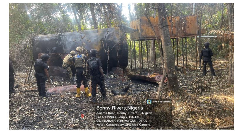 The Navy seized approximately 3,000 litres of refined diesel stored in jerrycans, along with several cooking ovens used to process stolen crude oil. Seven suspects were arrested, although the main operators of the illegal refinery have been declared wanted.