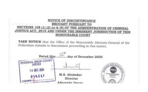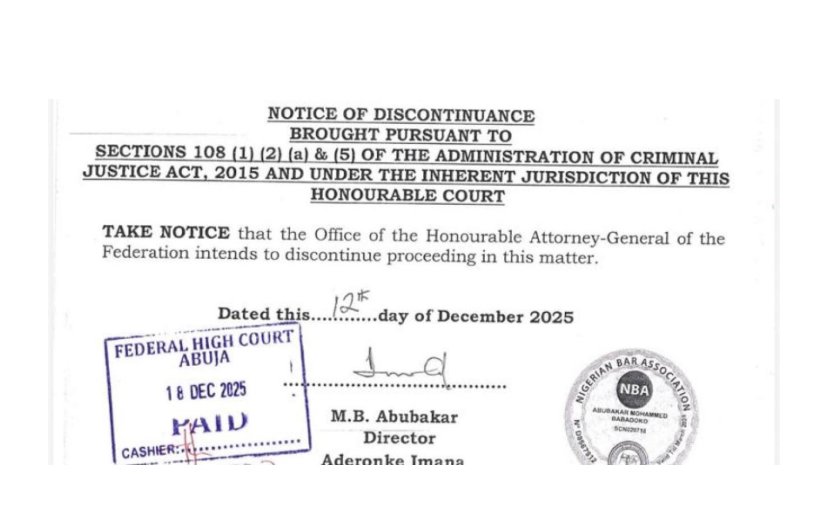 The Federal Government of Nigeria has discontinued the criminal defamation case filed against Senator Natasha Akpoti-Uduaghan, representing Kogi Central Senatorial District. The decision to terminate the proceedings was communicated to the Federal High Court through a notice of discontinuance dated December 12, 2025 .