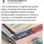 The US Embassy in Nigeria has started revoking valid visas issued to Nigerian citizens, causing widespread disruption and financial losses. The revocations, which began quietly, have affected various groups, including professionals, entrepreneurs, frequent travelers, and families.
